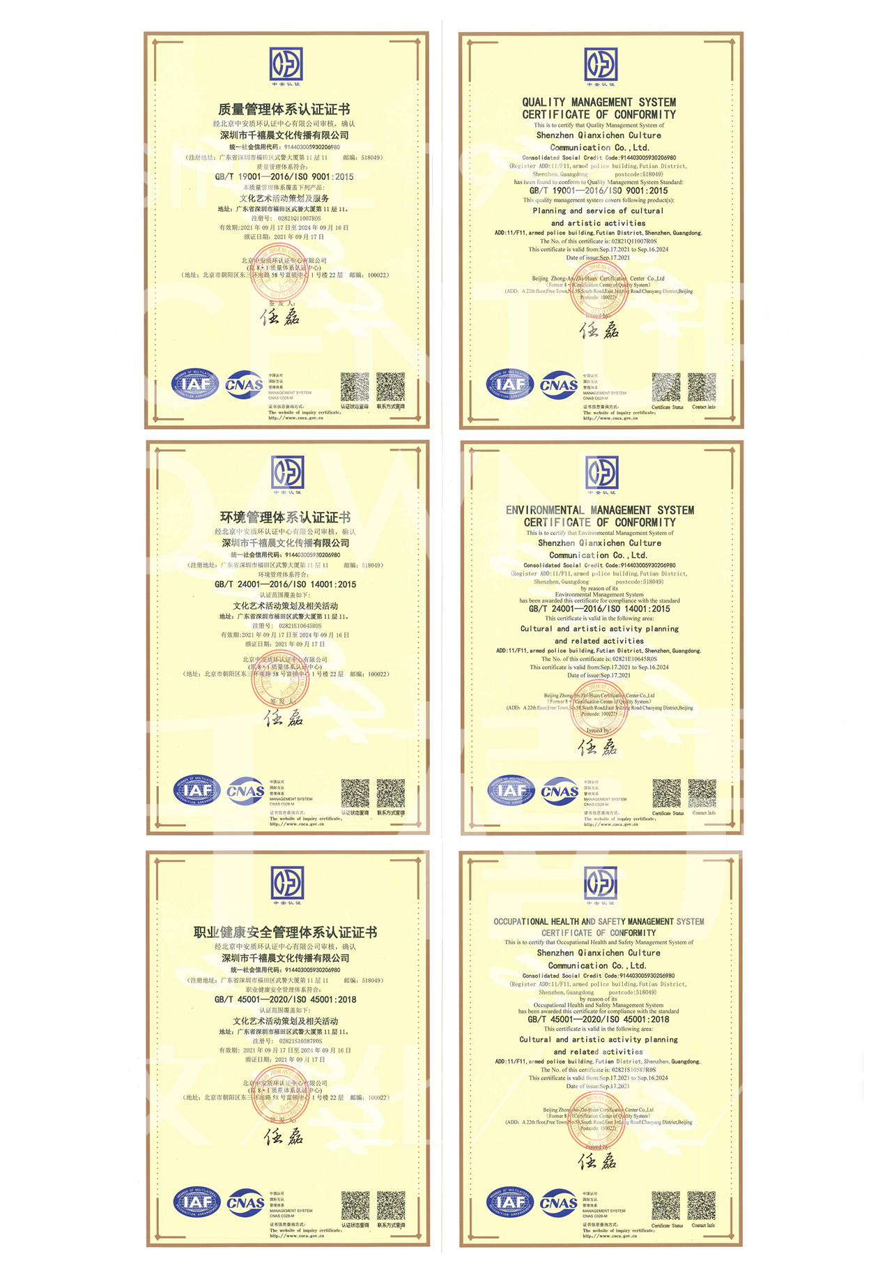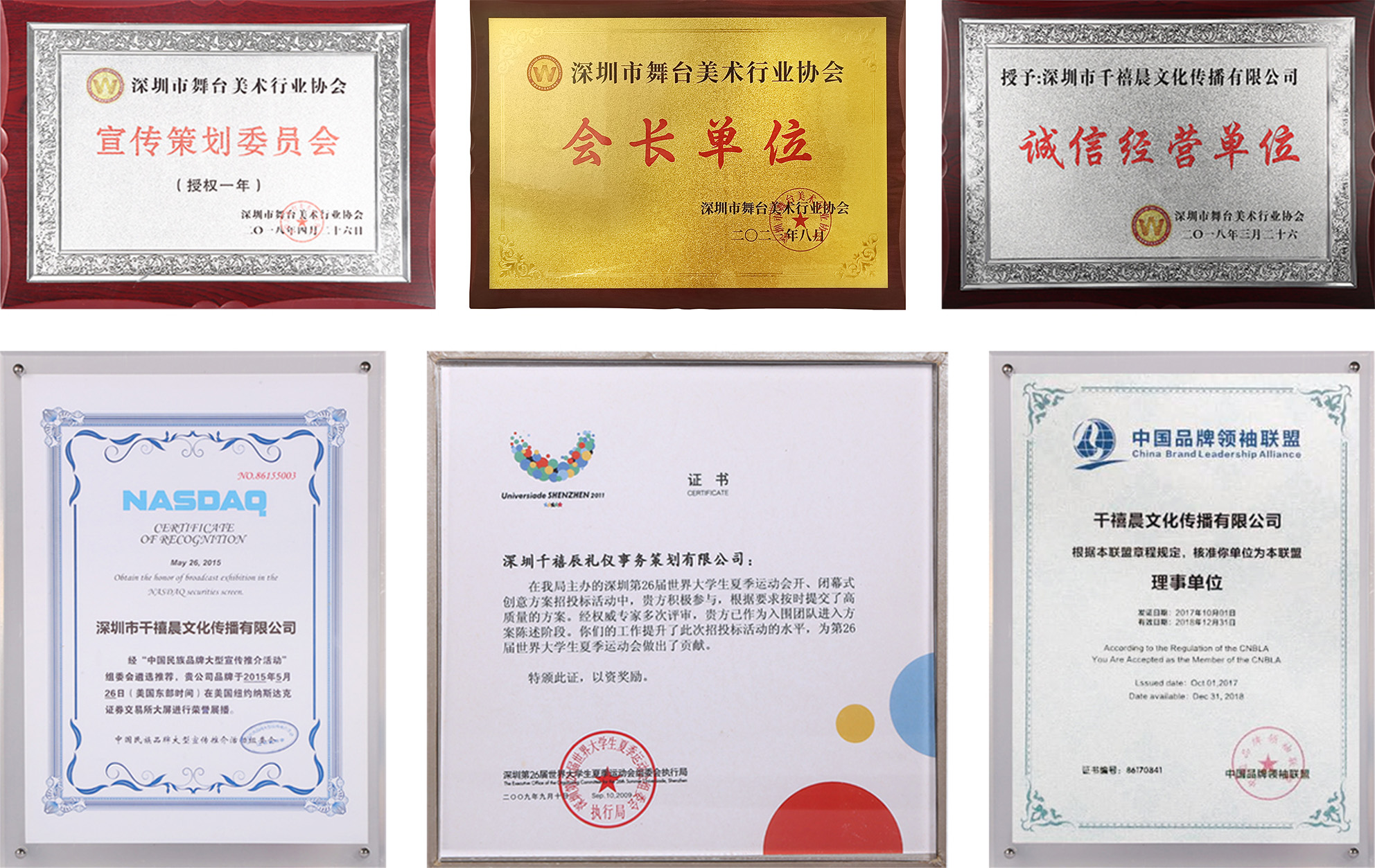 千禧晨榮譽資質